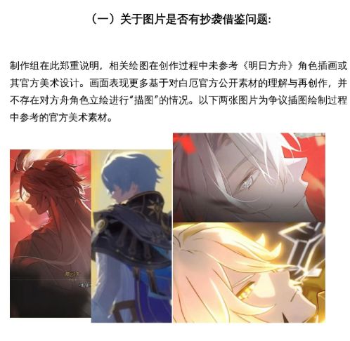 制作组称作品基于3.5版本剧情创作,无盈利、禁拉踩、含OOC,否认美术抄袭《明日方舟》,同时承认未经授权使用该作BGM不妥。但玩家指出,作品打着“原作向”“重拾伏笔改写结局” 旗号,却大量魔改原作设定与角色人设,如强行设定卡厄斯等同于白厄、扭曲白厄对抗毁灭的核心人设、新增原作无依据的双生子与第十三泰坦设定,严重 OOC。