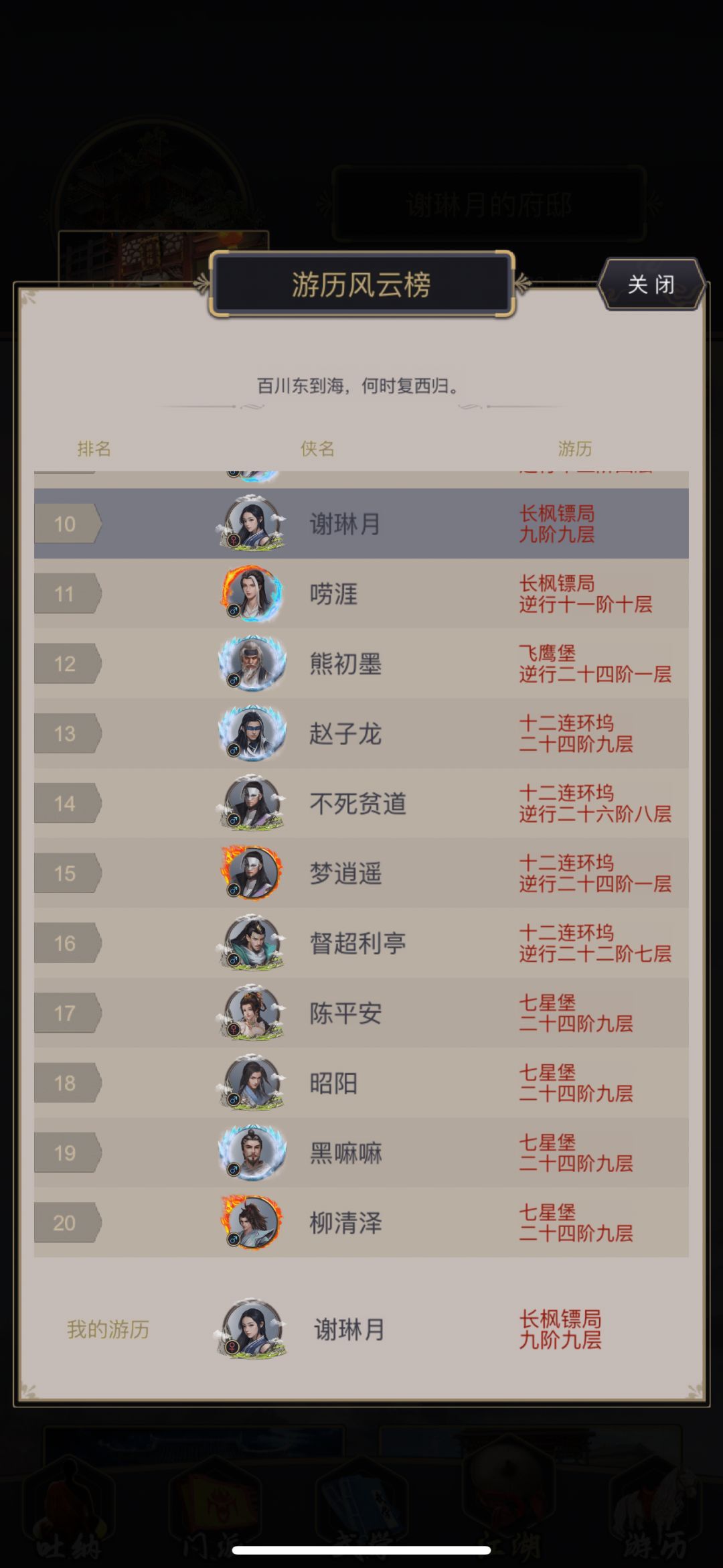无论如何,现在9-9小任脉正式能穿上月华均天套了,一下子多了很多能提升的东西,等这些属性消化完我相信镖局也过了,希望我能快速过镖局吧(我记得我过武穆的时候有人想看我9-9过百花,时过境迁现在至少到百花没什么问题了)。目前青衣不是一般意义上的速通但也确实是我目前最快过的图了,卡了一个半月。