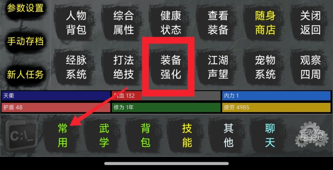 点击常用,点击强化装备即可进入强化装备界面。