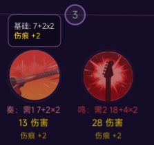 (2)定制电吉他战斗:展示“伤痕标记”触发图标/文字提示、下次攻击+2伤害数字;