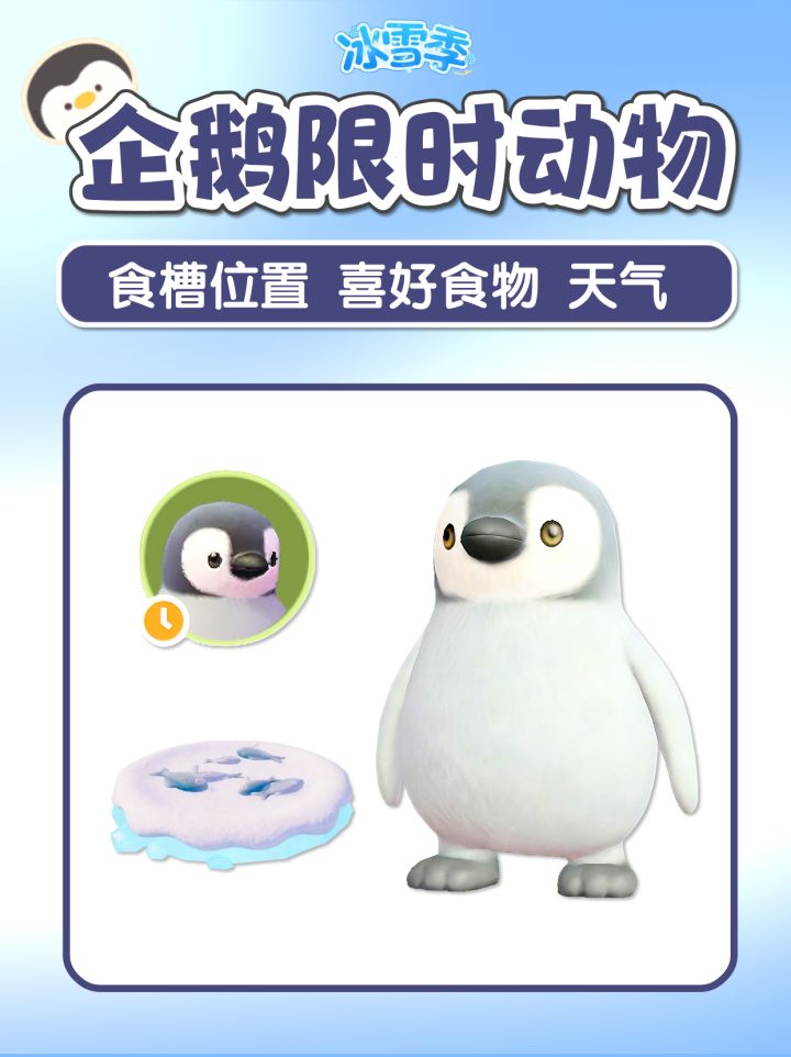 冰雪季限定动物企鹅 食槽位置 喜好食物天气