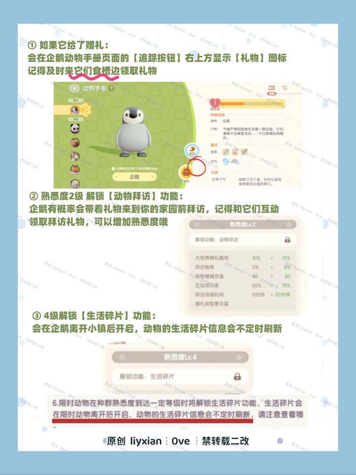 所以如果想要拿满熟悉度奖励,记得每日都给企鹅的食槽填满食物,尽量多喂它们吃喜爱的食物,会额外提升熟悉度。