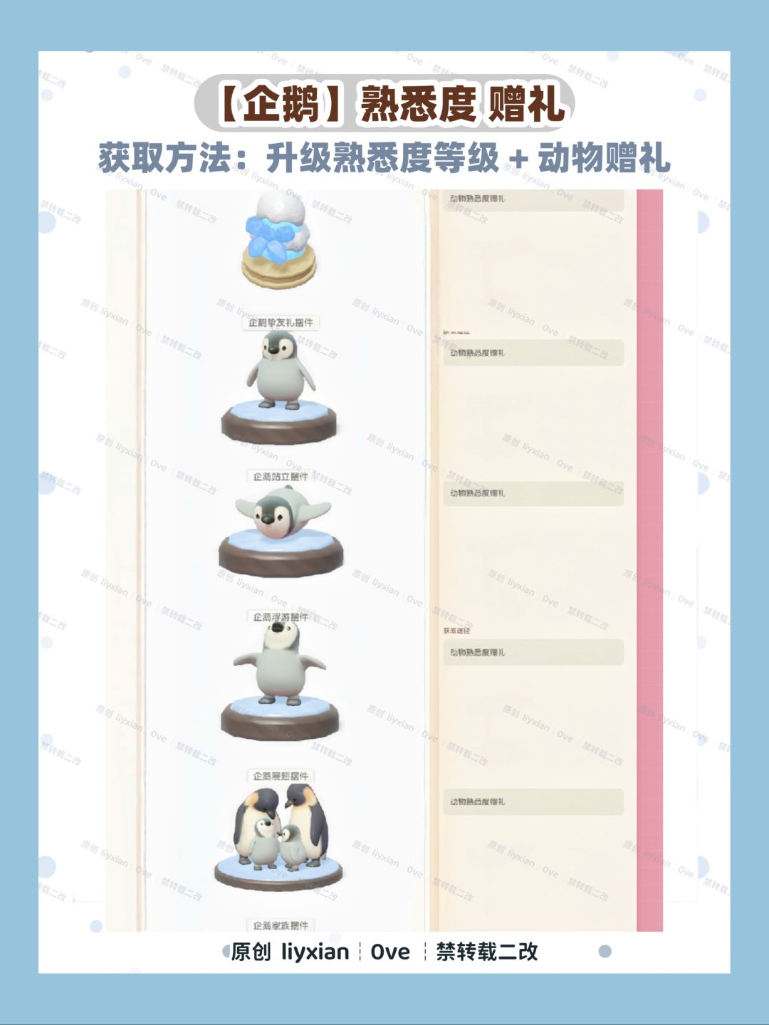 【企鹅】的食槽位置、喜好、熟悉度攻略等如图。