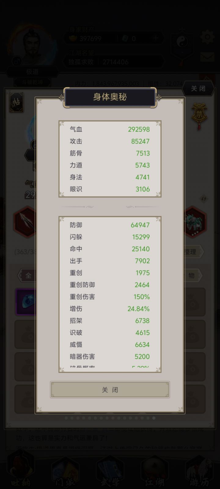 实际属性比截图低一点,因为忘截图直接升2阶武穆套装了