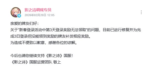 国服最近出了件事,新春登录活动第三天奖励死活领不了,把玩家气得够呛。运营那边收到玩家反馈后反应也足够快,假期期间给大伙赶紧修完了bug补发奖励,当然游戏修完bug依旧不给奖励,玩家依旧对抠门国服感到不满