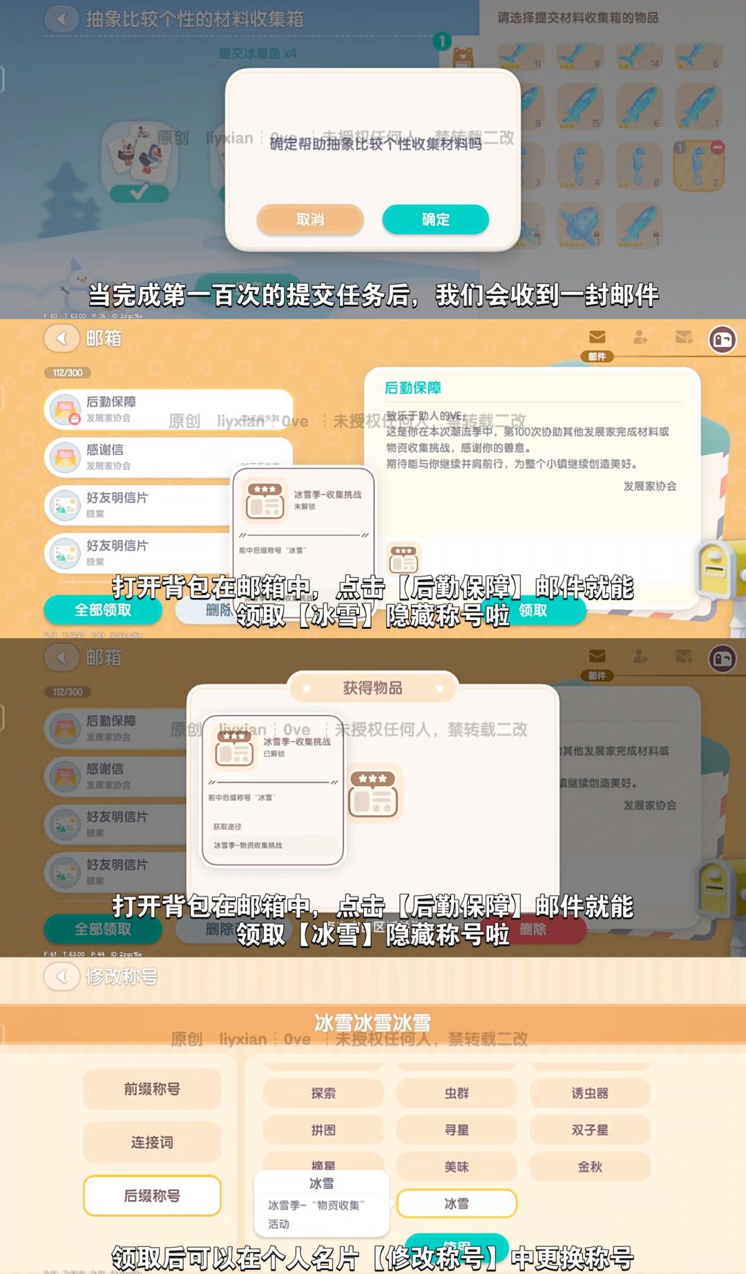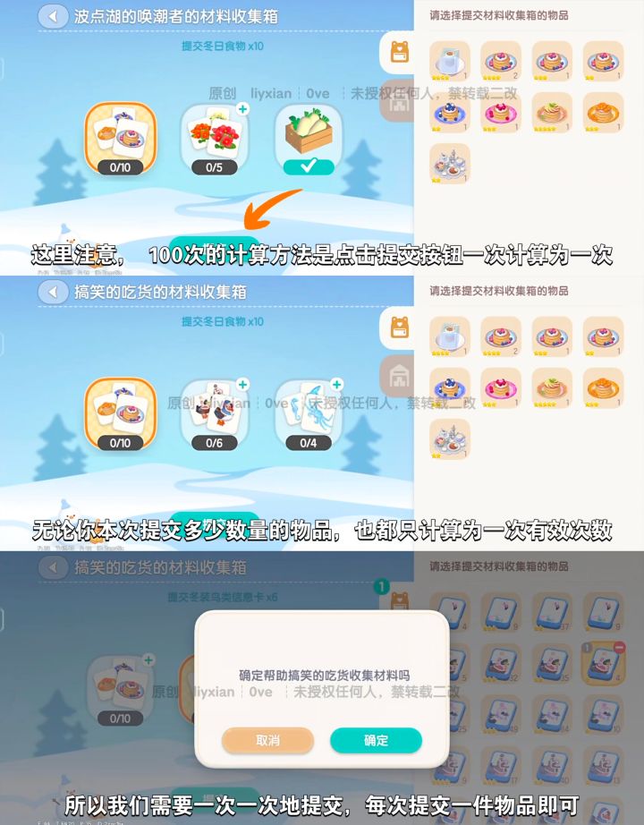 我们需要为其他发展家的收集箱上,提交冰雪季限定物品【100次】。