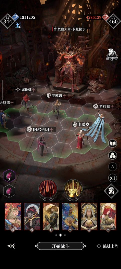3.护盾记得cd好了就用,否则可能来不及在boss转阶段时用完(两次全场伤害)。2级盾给亲王、罗拉娜,1级盾给银夜(因而这里银夜需要高魔模版、拉满刃契,装备和律文的近战、魔法免伤也拉满,需要他抗住一次全场伤害)