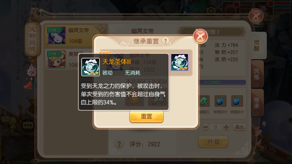 以上就是关于宠物【继承重置】功能的补充说明啦!