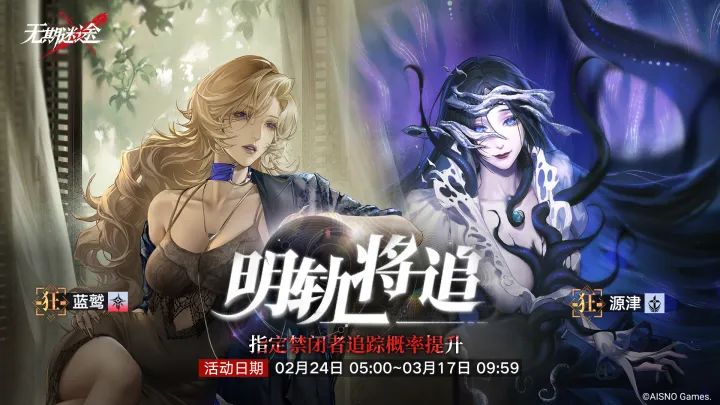 《无期迷途》运营团队发布官方公告,明轨将追定向追踪活动将于2月24日05:00至3月17日09:59正式开启,活动期间多位禁闭者限时追踪概率提升。