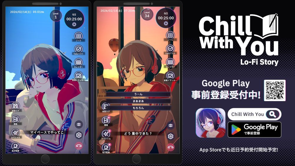 小番茄钟类游戏《放松时光:与你共享Lo-Fi故事》(Chill with You : Lo-Fi Story)移动端本周开启了谷歌预约,ios或将近期公布。日本不知道那边最近为啥很多这样的伪挂机轻音乐播放器+模拟时钟的玩意。