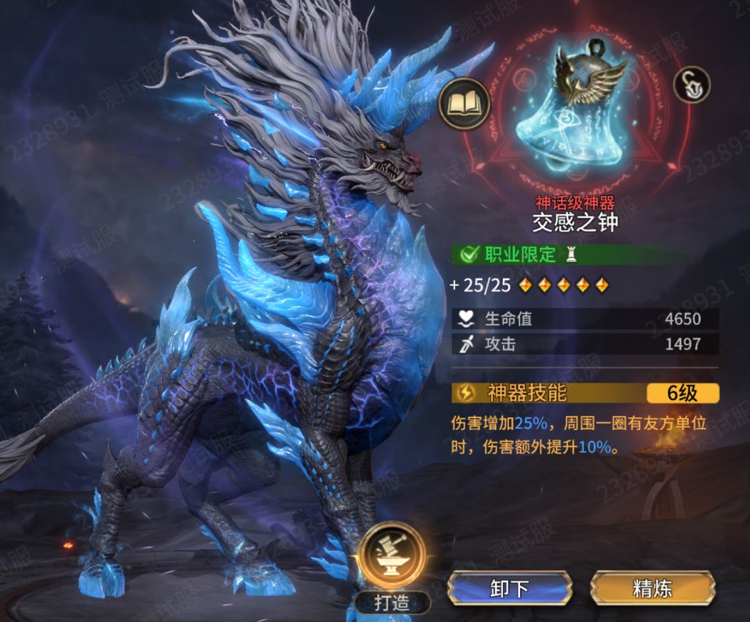 选择通用神器“交感之钟”即可,基础25%增伤,周围有友方单位时可额外提供10%增伤。