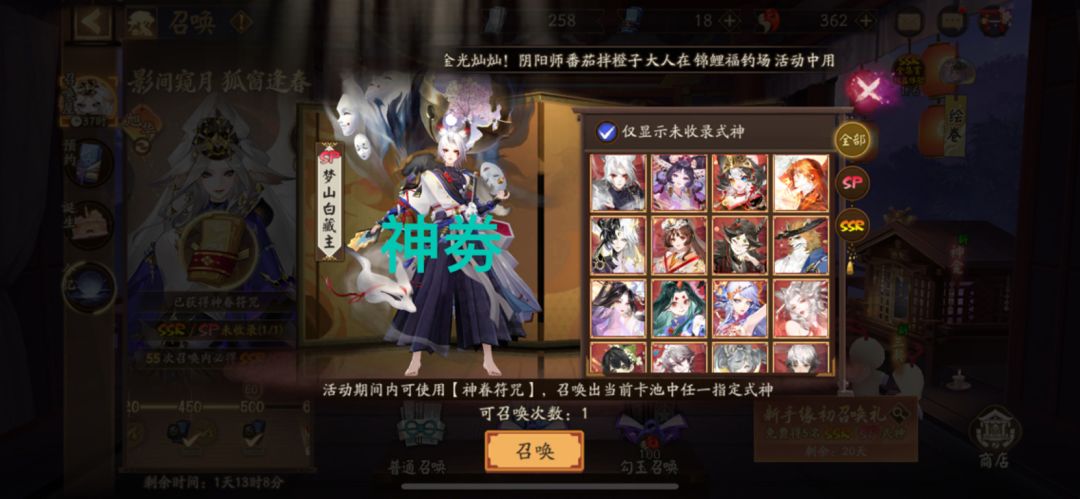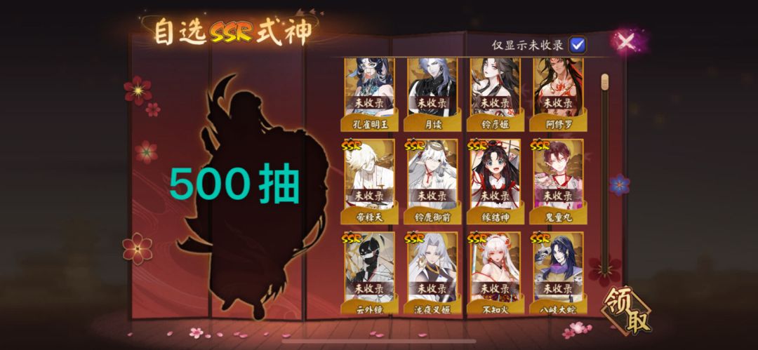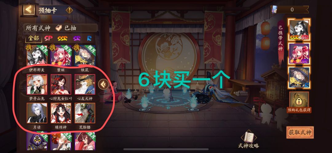 召唤池500抽没有葛叶,这是我现在所有的式神,7天签到自选还没有领,500抽自选也没有选,神劵也没有选,还有6块的也还没有买。缘初之路还有两个自选没有肝到,15天签到自选还没到时间。我的式神应该怎么搭配,神劵要到期了,要选哪个式神。请大佬指教一下