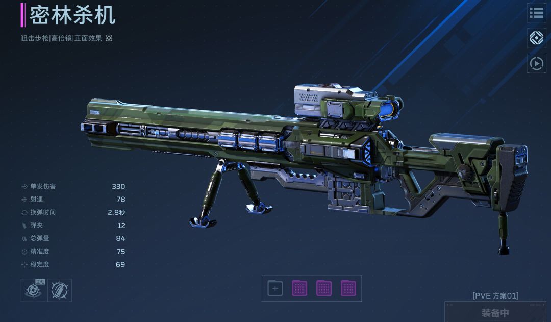 密林杀机由于是狙击枪,因此无论是僵尸猎场模式还是机甲战模式,都能很好的适配,在僵尸猎场模式中,密林杀机可以作为辅助位,在攻坚打BOSS时,利用自己的主动技能为队友增加伤害,并且自身的单体爆发能力也是比较不俗。