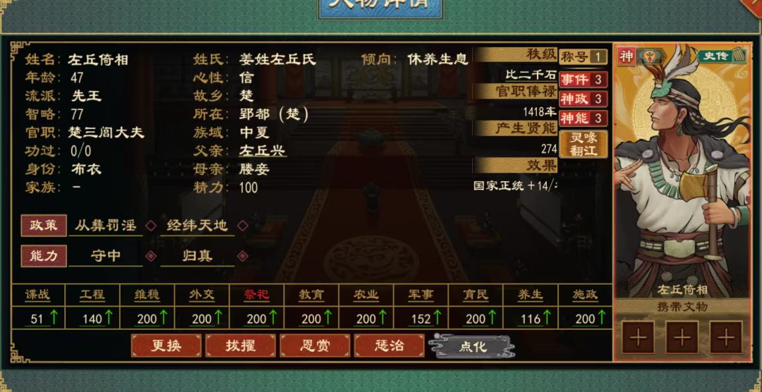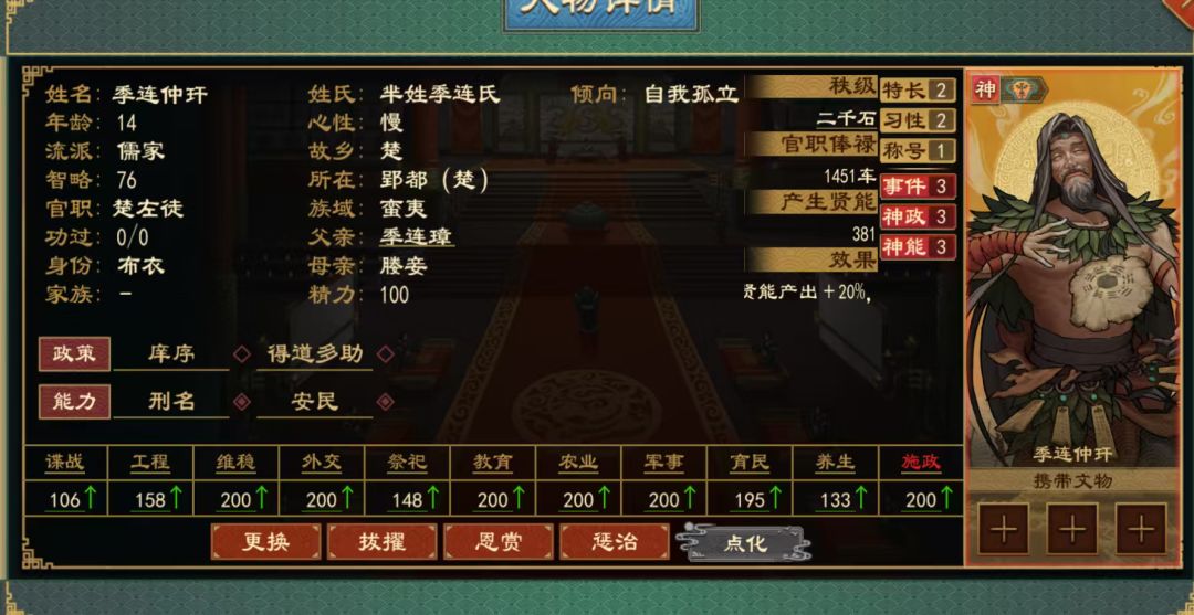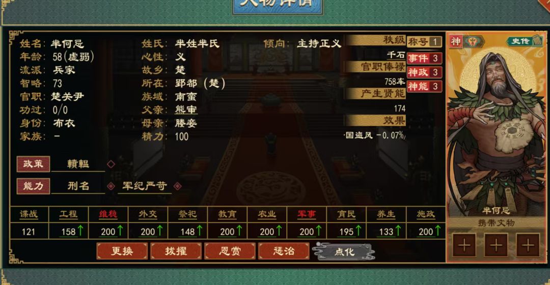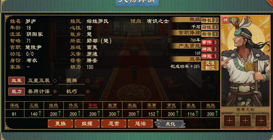 连尹:外交+军事 效果:加行军速度(最大+14%)