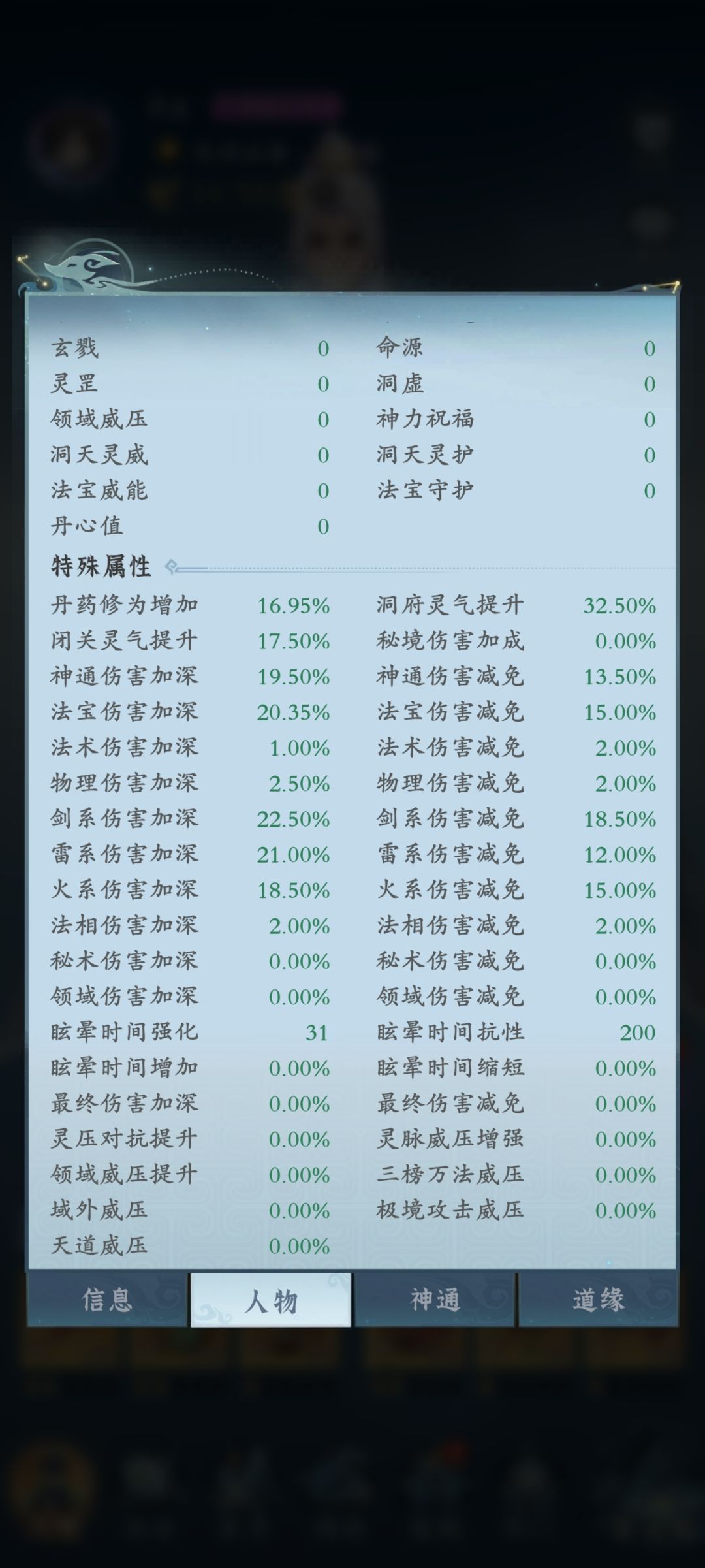 飞升还有14天,第一次玩,看了大量攻略,自己综合的,理论来说飞升神通会心250%,神通加伤20%剑系24%保守估计!掠影已经天一,后续慢慢补,心法推养不能回退,所以看你需要的词条推养,不想要的词条别推了,留着,其他的推二加30精法点就行,就着飞升用!抽的不太好,目前玩存宗门贡献个论剑币了,诸天还有一万么用,杂七杂八的,我是放弃了很多资源故意降低自己资源获取!不信就随你11198的书生,以前叫狂徒!资源我是主养的二维,攻击,会心就么了,灵压,灵兽,领域全放弃了,资源倾斜0氪极限二维,神通加伤,会心倍数,主系加成