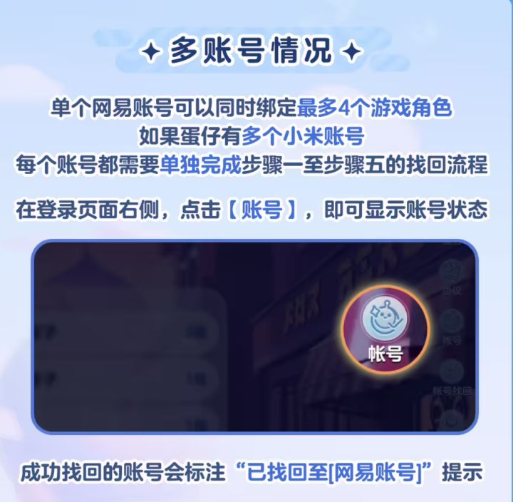 官方表示,为了保证游玩体验,请当前仍未完成资产找回的蛋仔,尽快通过官方指引完成游戏角色资产找回流程。现在完成角色资产找回还能获得 10 枚彩虹币奖励。