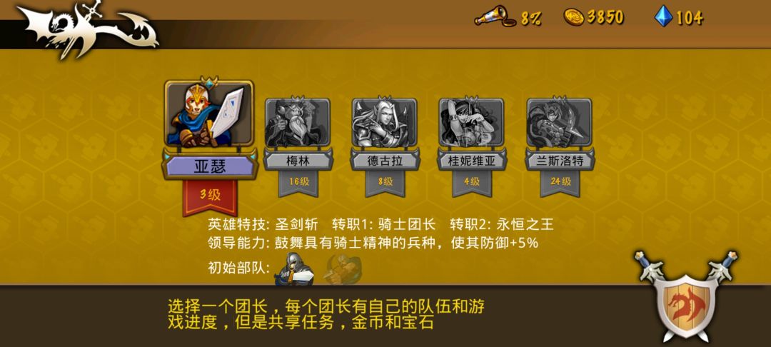 这款战棋游戏上手快,兵种搭配自由度高。新手推荐兰斯洛特(弓团),其领导能力可大幅提升射手输出与速度,远程压制力强;或选择德古拉(鬼团),吸血特性让续航拉满,容错率高。关卡推进节奏适中,适合慢慢摸索阵容,值得一试。