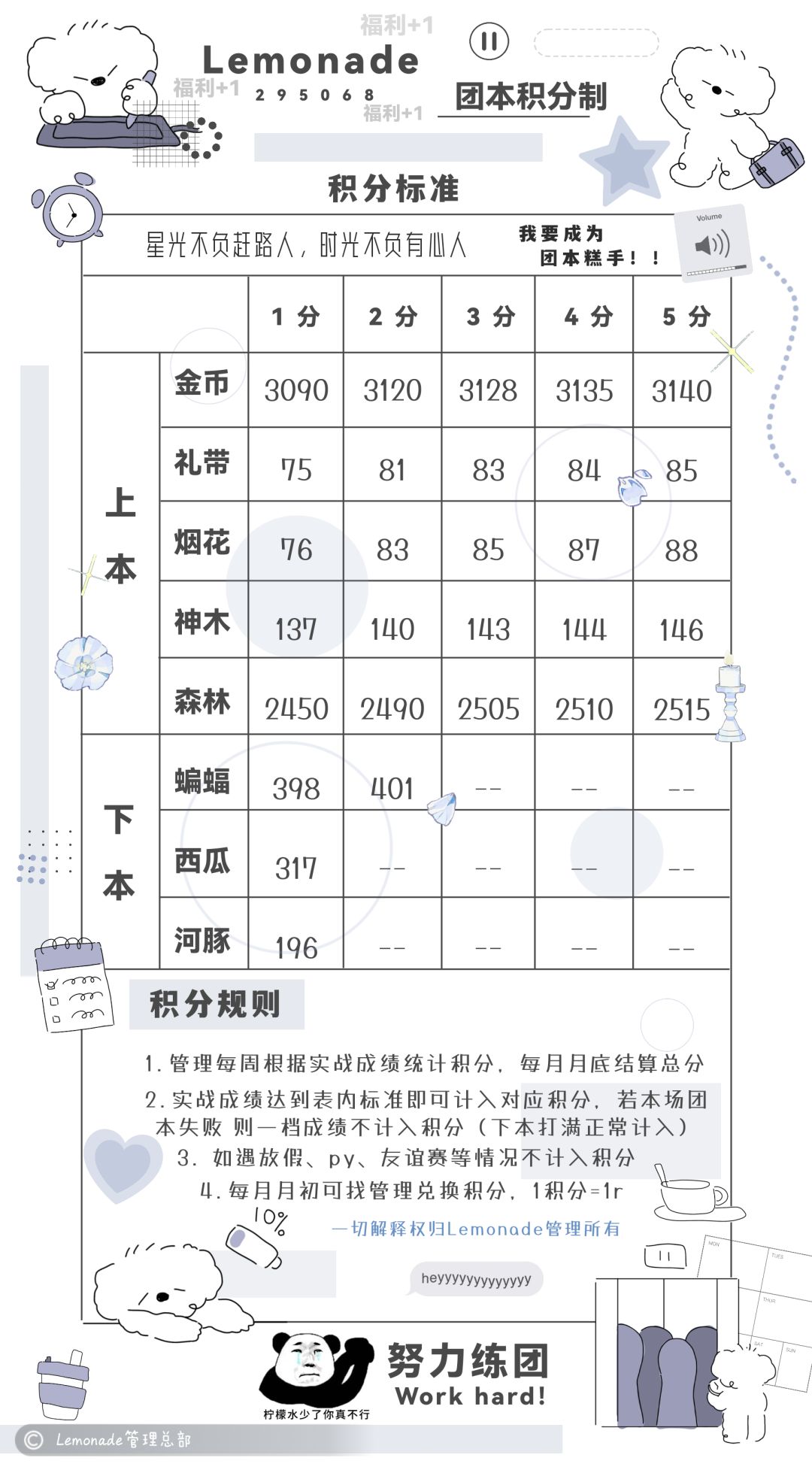 水鹤5命起,紫卫隼毕业。深渊强制要求拉满,有事来不了需自行找人顶替,至少待满一个深渊赛季