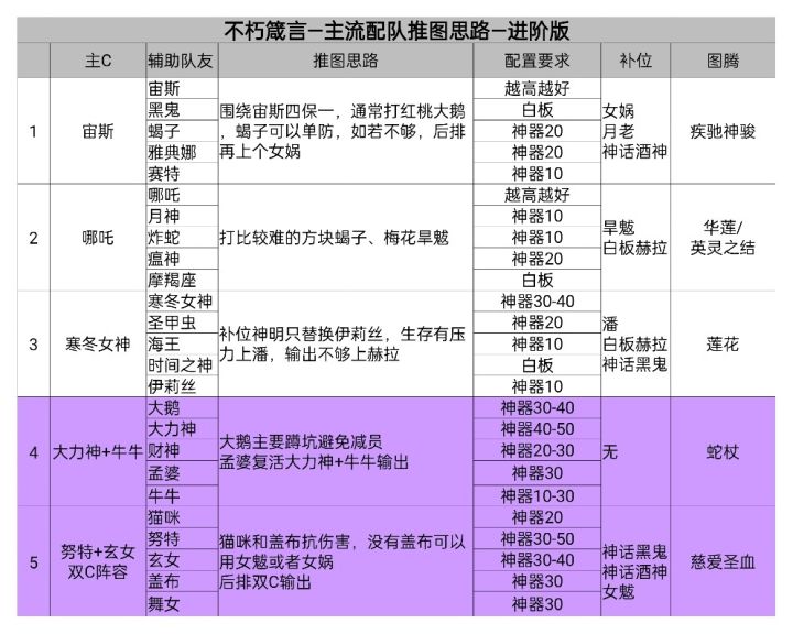 不朽箴言神明培养建议及推图配队思路
