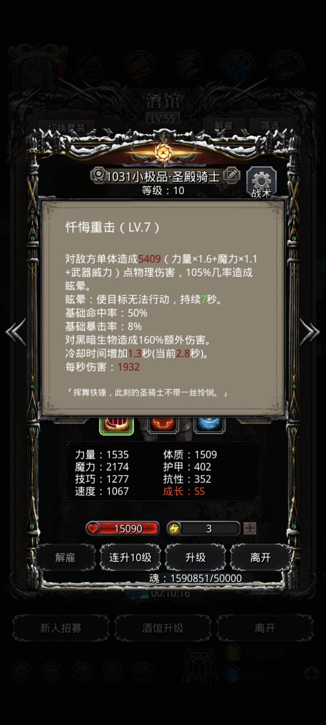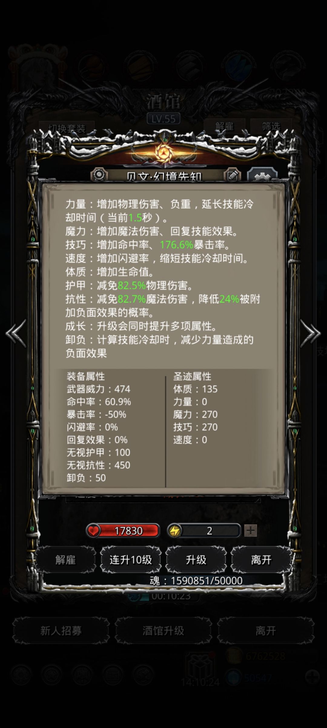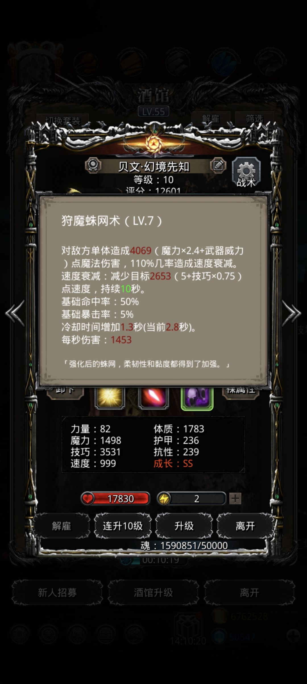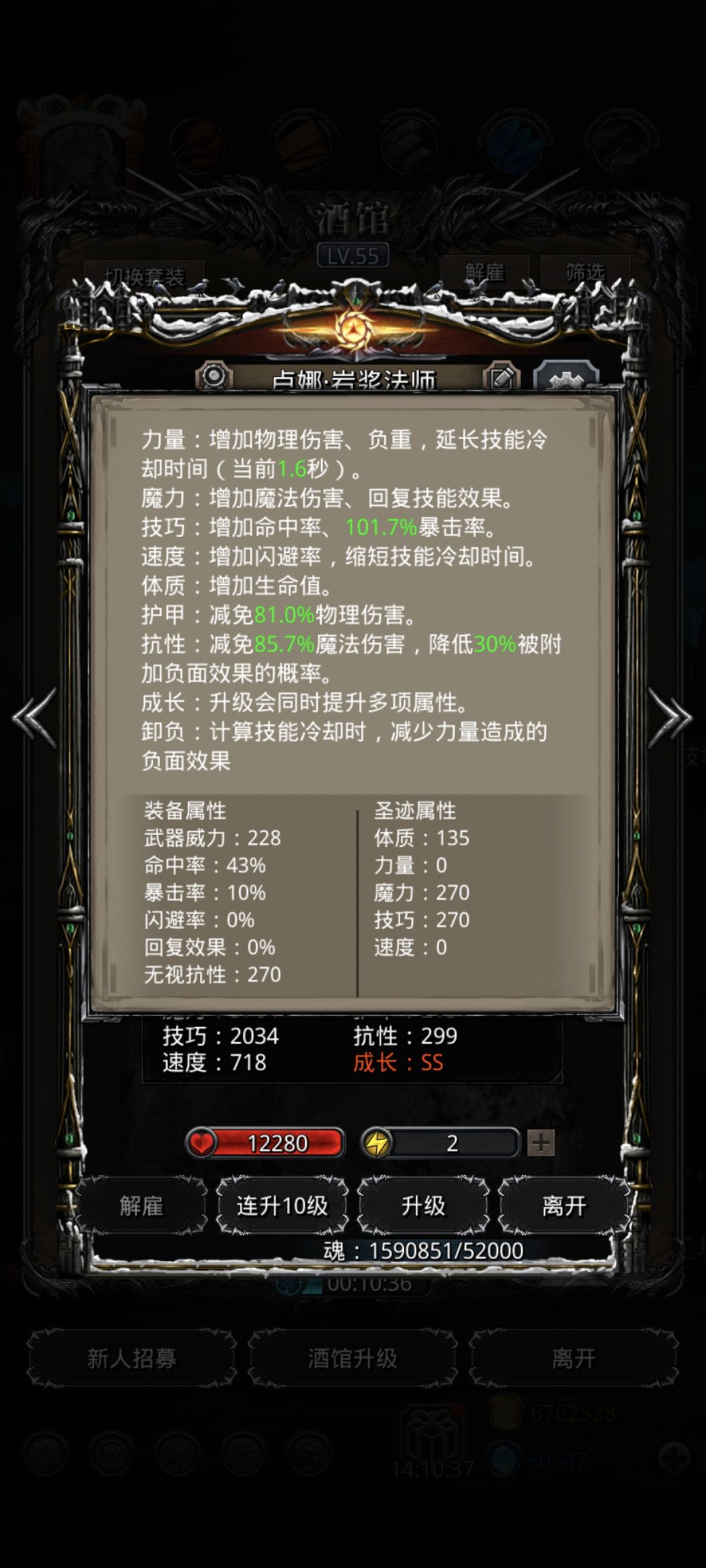 火法我是开局逮一下,然后后面为了求稳是打二奶一,主要刷脸看开局幻境能不能减速到,后面基本就稳了,独裁堆技巧,开破甲,幻境只开减速,火法跟幻境带了先发,幻境是技巧先发,火法是命中先发,魔石除了独裁基本都洗的命中