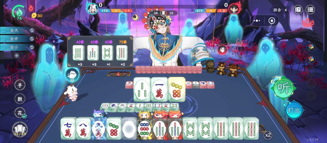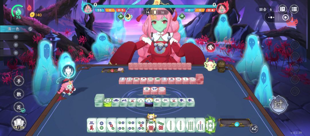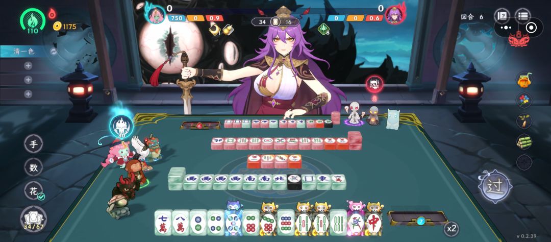 打牌的时候和我们平时拿着梼杌的玩法类似,先挑一种颜色的牌,后续用吃碰把一个颜色的牌沾过来,然后开技能上手,利用门清清一色的胡牌多特性去打点,也可以用三色三步高这类花活牌型。