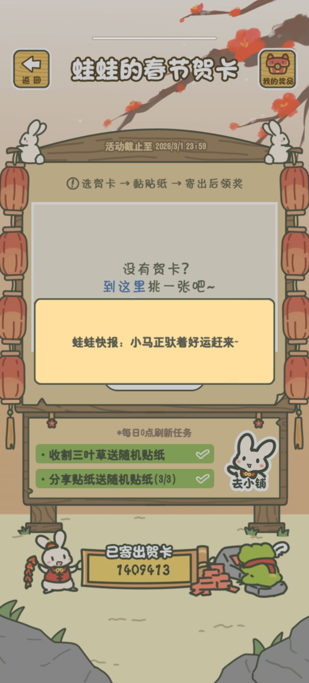 大安崽运气好开出紫檀木了,再攒攒贴纸先,小蛙崽和小小禾崽的准备搞贺卡了