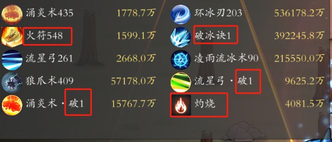 伤害统计界面中,数字可以理解为技能使用次数,破冰是一直循环存在的,打了怪不会消失,发射类技能用了就没了,具体就不解释了。