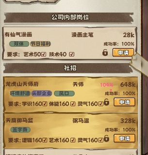 修仙职业有2个,一个是龙虎山天师,一个是弼马温,他们都需要通过前置事件解锁才可以在招聘栏位刷新到。