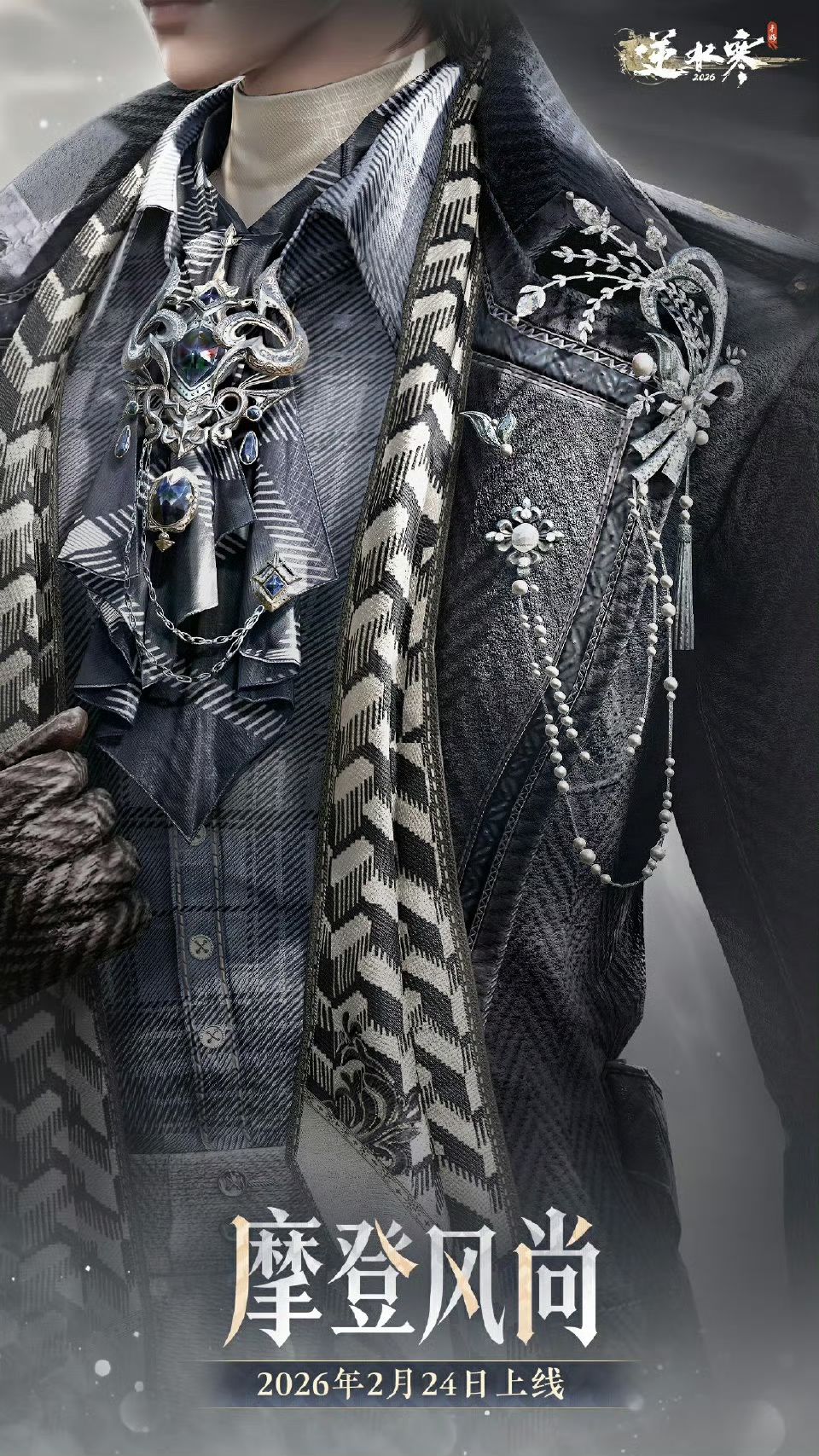 全新时装【摩登风尚】将限时上架商城,还将同步解锁配饰帽子【雏菊与阳】、配饰眼镜【冷雾】、黑发头像、单人动作、双人动作以及群龙之首动画。专属天赏发型【雾中曲】也将同步上线!新年新衣,开工开运,穿上它奔向新年新气象吧~