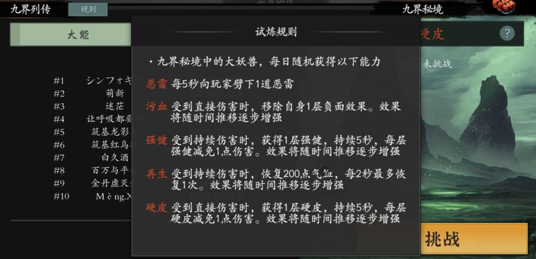 下面的是九界的规则,所有的规则都是加强boss的,特别注意“污血”,别到时候问为什么debuff叠不上去