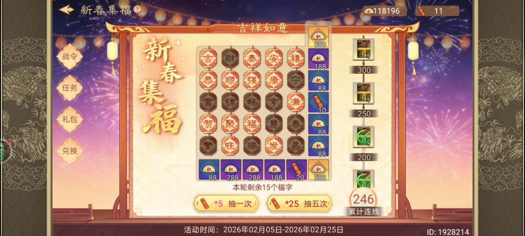 第十八天出了。。还行吧。这次的抽奖和灯阵