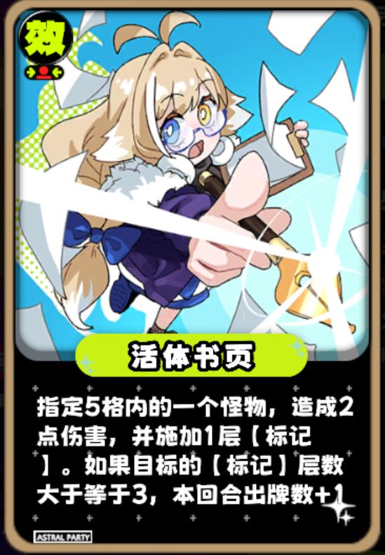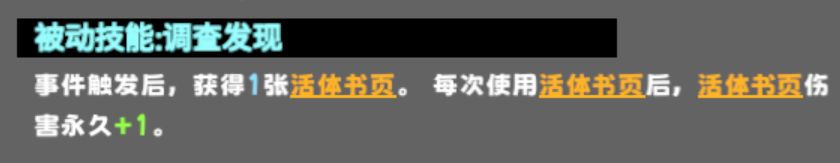 基础情况下只有2点伤害但配合上凛的被动‘每次使用活体书页后,活体书页伤害永久+1’,在游戏后期叠到十几点伤害也是常有的事情。