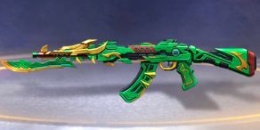 “看吧,整把枪以绿色为主,搭配金、红、蓝色,颜色较暗,符合关云长勇猛忠义的性格。你看那刺刀,上有很多刻痕,就是为了增强杀伤力。还有弹夹上的两颗类似子弹的金黄物体,给整把枪增加了不一样的魅力。”