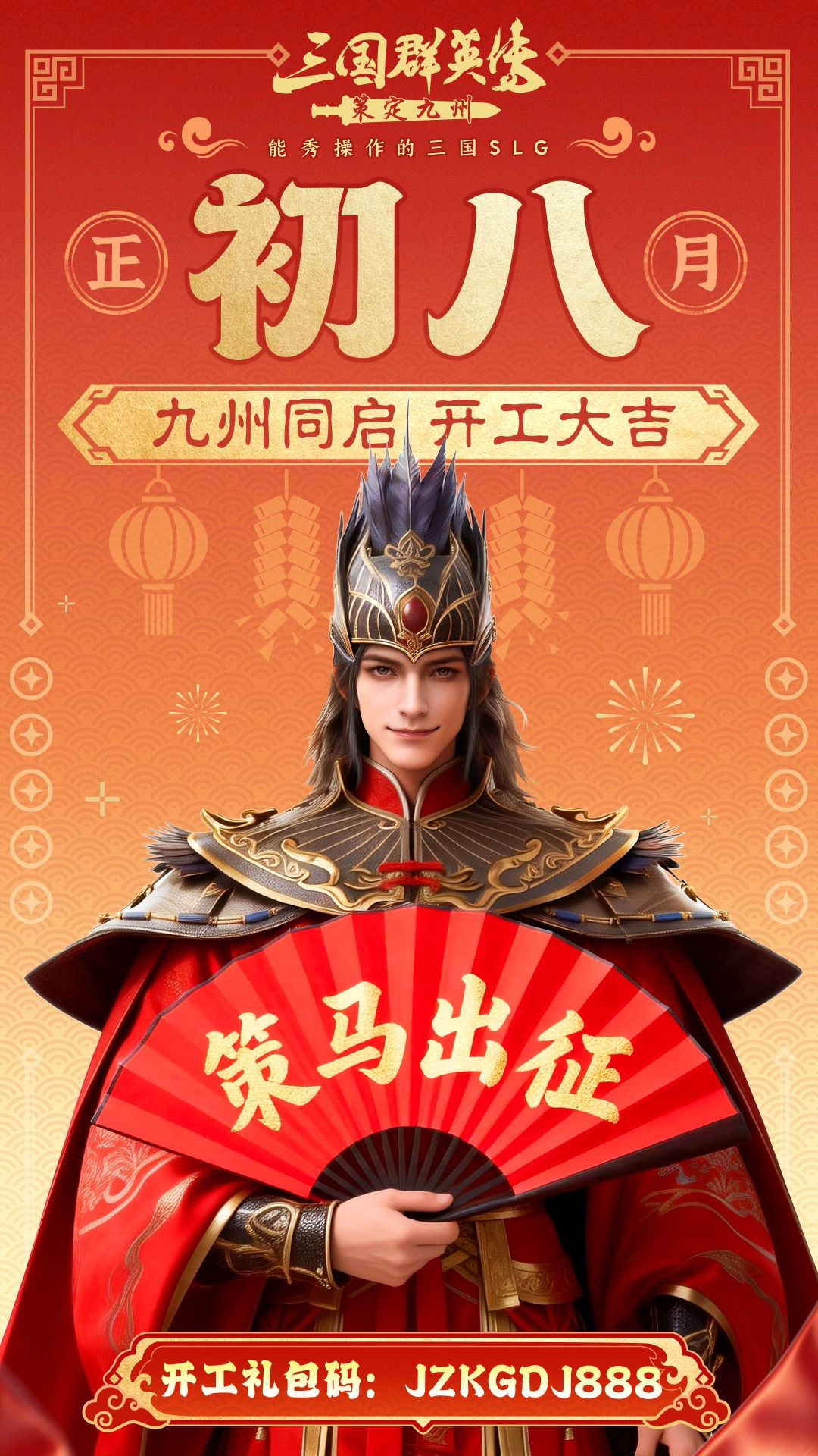 大年初八,开工大吉!虽然假期余额已归零,但咱们逐鹿九州的雄心可是满格状态!今天是丙午马年第一个开工日,九妹先在这儿祝主公们:策马扬鞭踏新程,九州同启万事兴! (文末小程序礼包上新,扫码即可领好礼!)