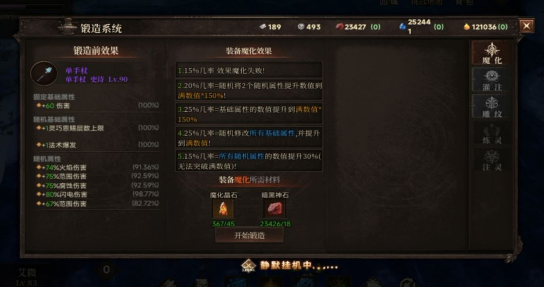 魔化:锻造装备的最后一步,魔化后不能更改随机属性