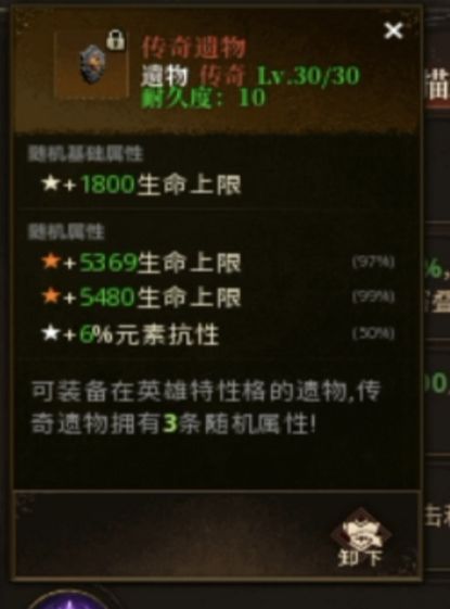 因为洗练是随机的,所以不存在什么一定要洗到百分百完美,尽量符合你心目中的要求即可,保底需要有2条生命,因为我们可以通过洗练史诗级遗物来确保我们至少有2条生命,花费较少代价洗练在进阶即可获得能使用的双生命+1随机属性的遗物(进阶后等级重置且不退回材料)