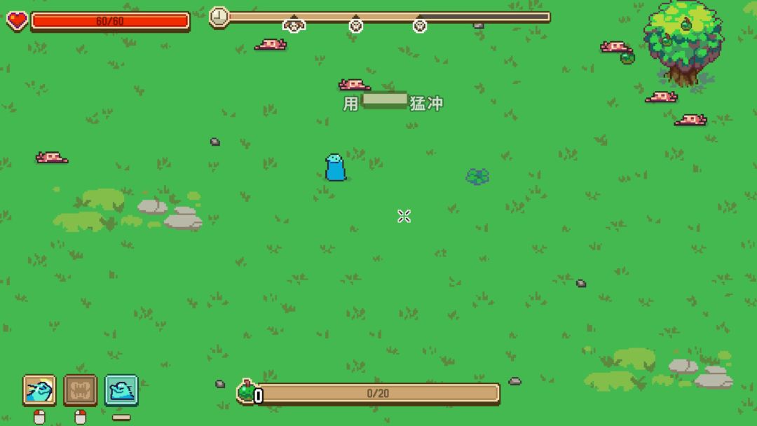 游戏一开始,你就是一个像史莱姆的小肉球,啥也没有,就一个可怜巴巴的近战攻击。这时候你要干嘛?吃。看见啥吃啥,其他小动物可以吃,地上掉的果子可以吃,别人吃剩的尸体也能捡来吃 。