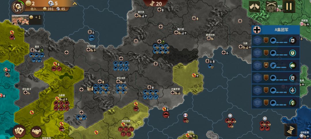 开局南部大撤退,莫德尔1V7死守巴黎,克卢格伦德施泰特会师北上清掉诺曼底,再南下清剿。戴高乐被海军打坠海了,为备战苏联进攻西班牙,北上因为诺曼底耽误太久只抢到伦敦