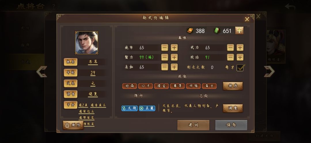 本攻略需要的是一个99智刘备志向的自建武将