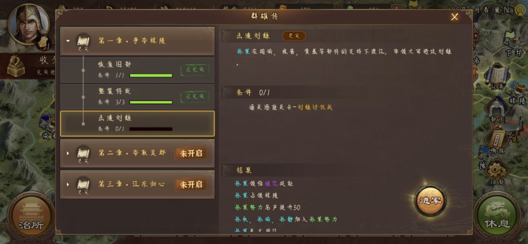 接下来剩下的任务我们去另一个剧本,也就是现在开的江东归心剧本,顺便薅薅奖励。