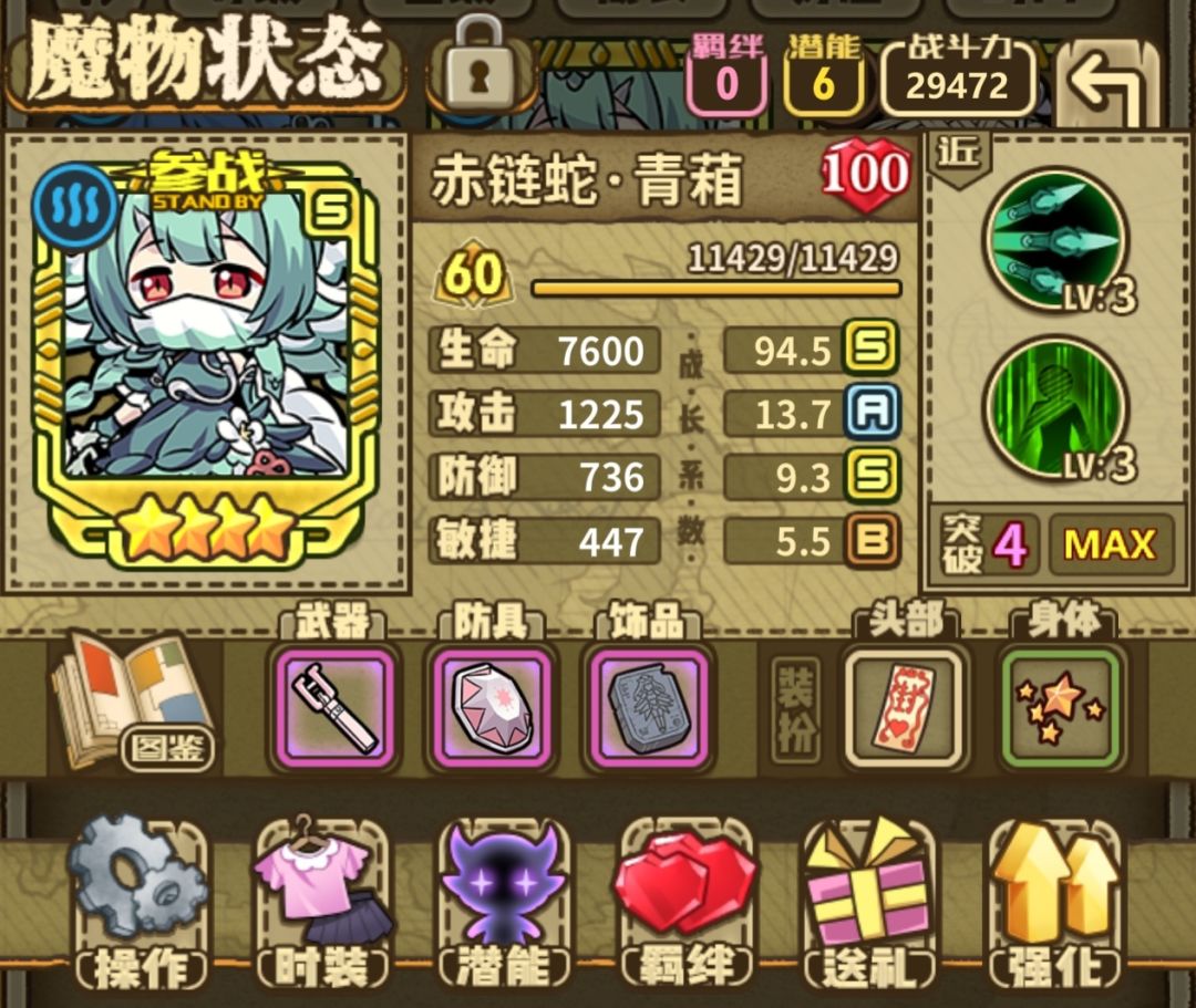 打通后进入甜蜜幻窟,挂上探索。终于能开赤链蛇的羁绊了(恼)