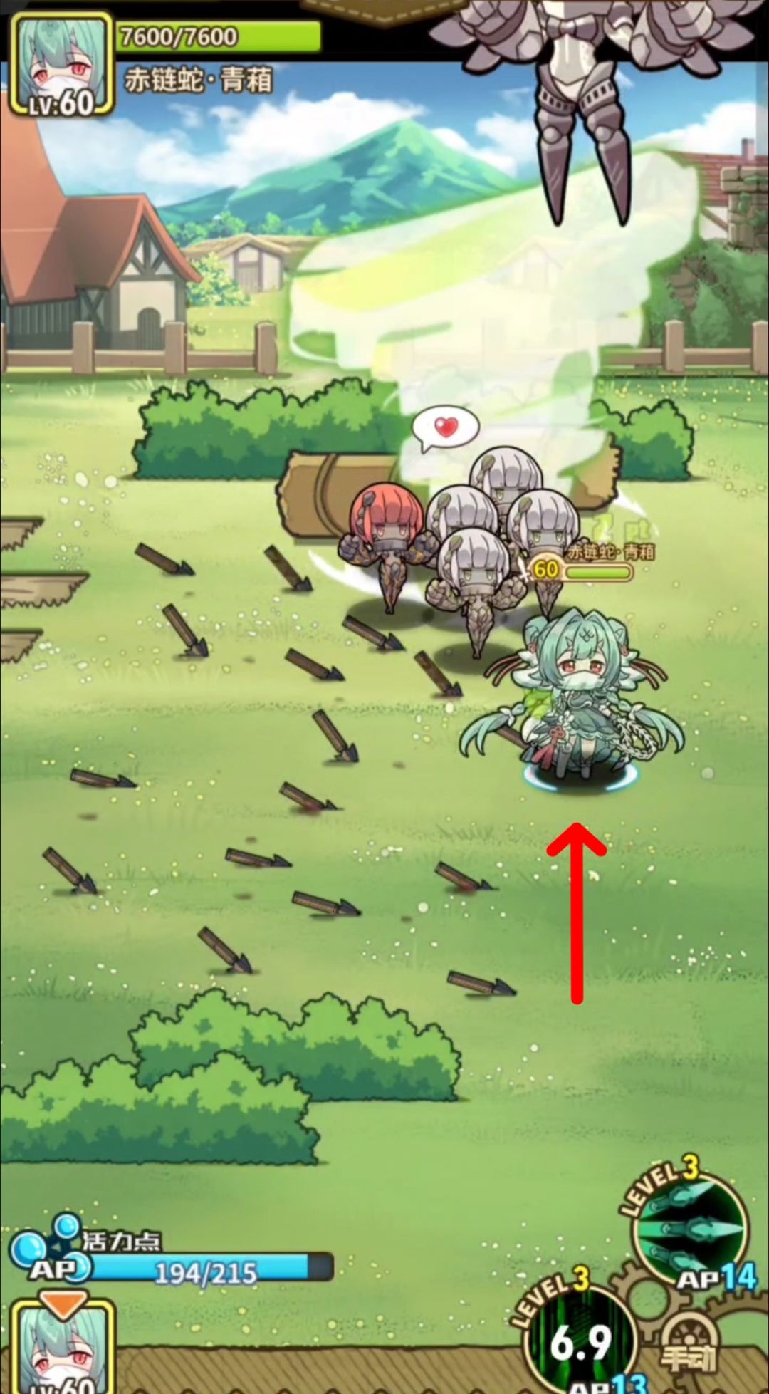 这无疑是主线中最难的一关。赤链蛇的抗压能力足够,但是经常被控制导致续不上2技能。最烦的就是击退与眩晕,导致我们难以近身释放技能,主包已经尽力,把探索用的俩角色都垫上了。不过如果你使用远程输出角色,这一关就会变得简单,我并没有
