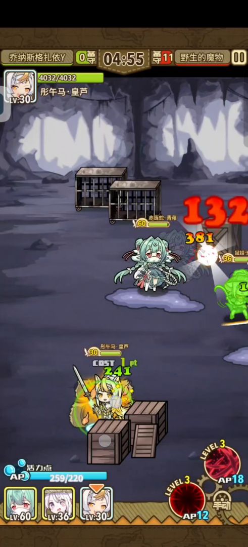 这无疑是主线中最难的一关。赤链蛇的抗压能力足够,但是经常被控制导致续不上2技能。最烦的就是击退与眩晕,导致我们难以近身释放技能,主包已经尽力,把探索用的俩角色都垫上了。不过如果你使用远程输出角色,这一关就会变得简单,我并没有