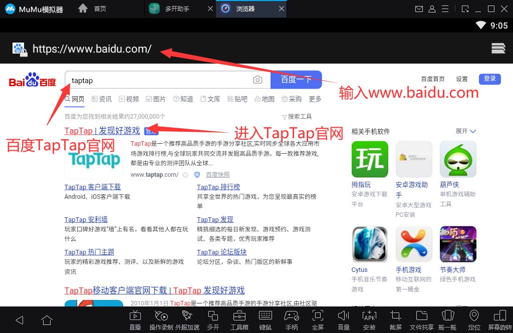 2.输入www.baidu.com 百度TapTap官网并进入