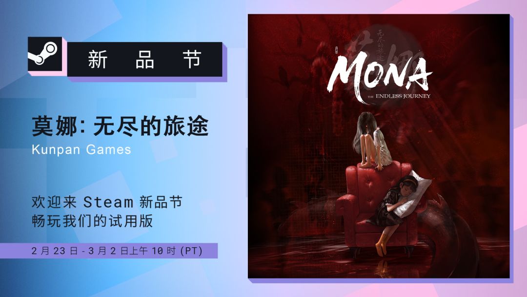 《莫娜:无尽的旅途》正在参加于2月24日至3月3日期间举办的Steam新品节!欢迎添加愿望单、试玩DEMO并与我们分享你的体验!
