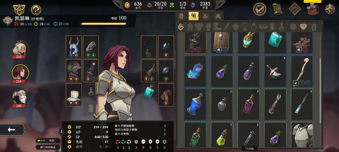 2,体系:我一般使用召唤物做前排,像游侠这种,很实用,输出我是靠术士,他有全体伤害卡,很适合应对高数量敌人,且他也有自保卡,建议都把3级卡都拿了