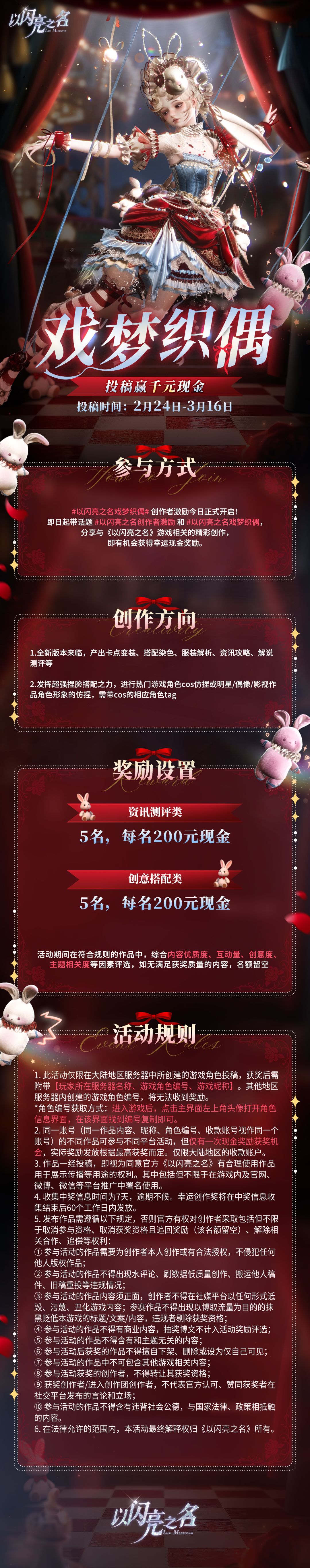 #以闪亮之名戏梦织偶# 创作大赛已上线!