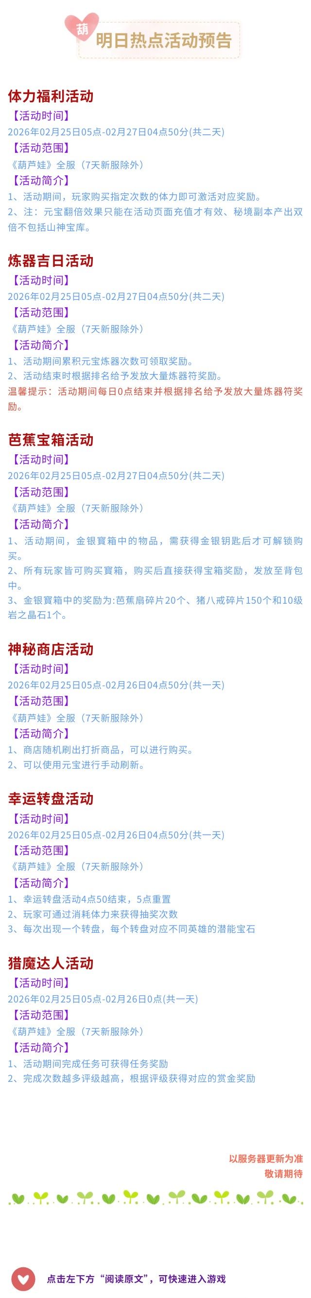 【葫芦娃】2月25日活动