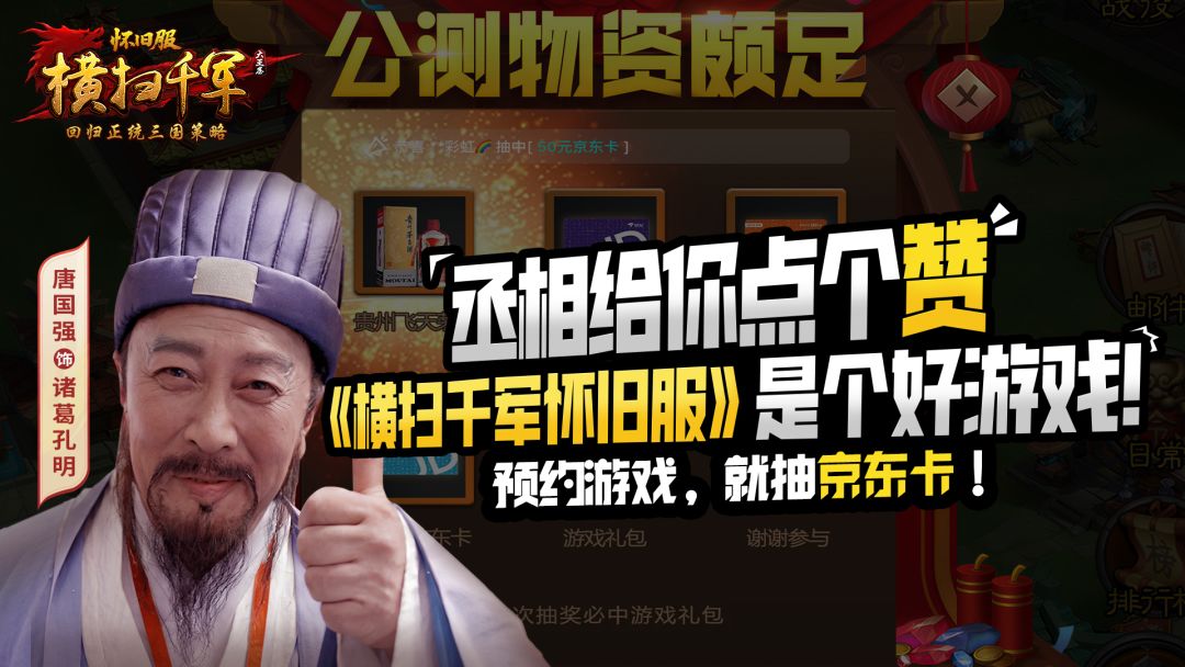 诸葛亮来了!唐国强入驻《横扫千军怀旧服》预约入阵,抽京东卡!