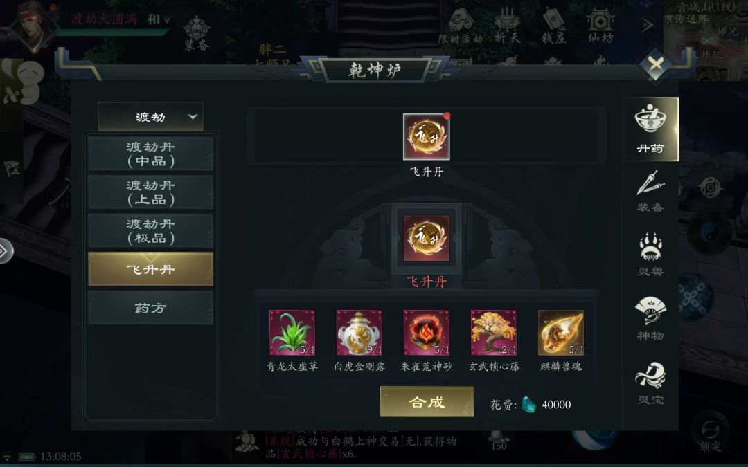 先前看了不少帖子描述飞升 也听说了剑仙飞升有多费劲 所以借助新年活动准备突破飞升一下 材料也准备了好多天